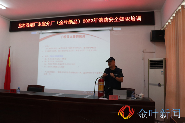為進一步提高全體職工的消防安全知識,加強突遇火災防洪等事故自防自救的能力,2022年6月27日下,龍巖卷煙廠永定分廠邀請永定區消防大隊為全體在職在崗職工,在本單位四樓會議室開展消防安全知識培訓生產車間逃生演練、廠區物流實際滅火演練