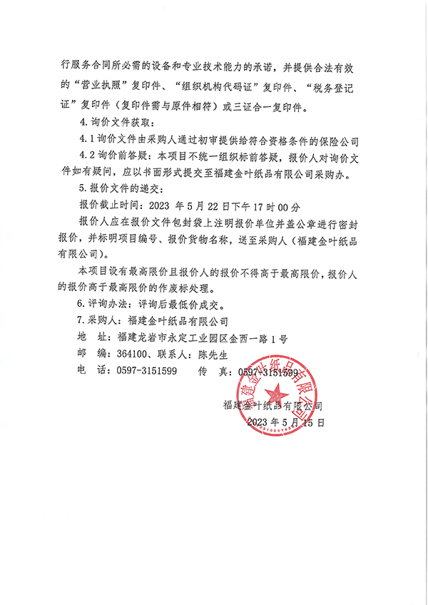 金葉紙品公司鍋爐水質(zhì)檢測(cè)服務(wù)項(xiàng)目詢價(jià)公告